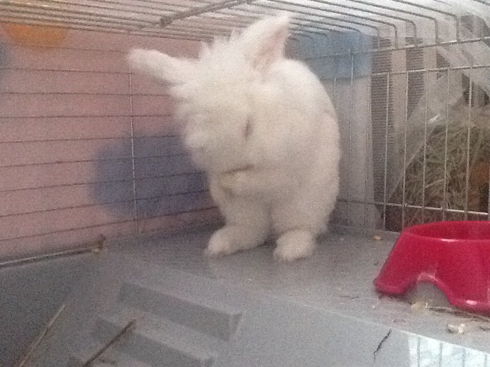 Éppen a zab adagom után ledőltem kicsit aludni, a gazdinak nagyon tetszett mert még a szememet is becsuktam, rohant a fényképezőért de mire ide ért már nem aludtam, még csak nem is feküdtem... Ezeket a képeket tudta csinálni: ( alvó nyuszi?! -majd máskor gazdi! :D